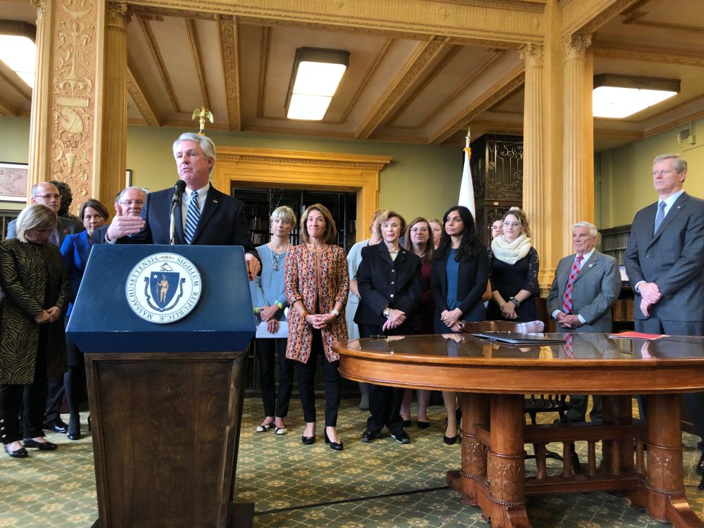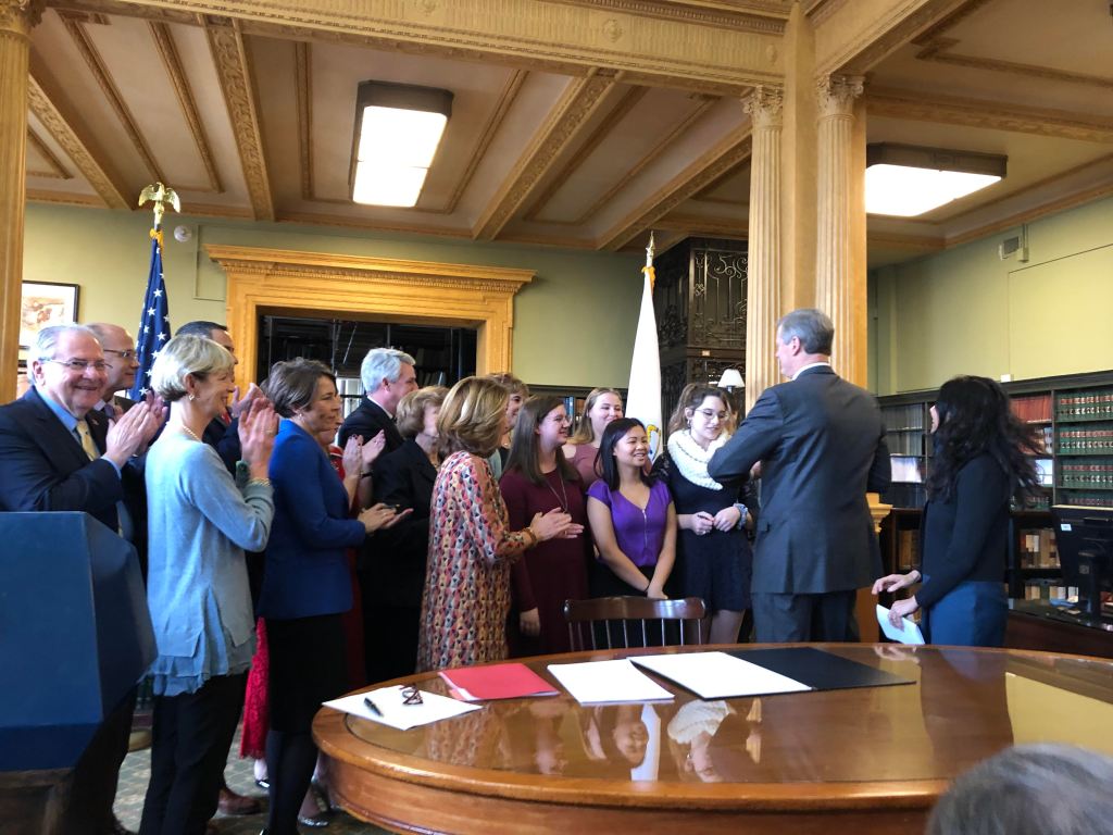 Without the hard work of the Holbrook students, and without the hard work from other young people like the students at the John D. O’Bryant School in Roxbury, we would not have been able to pass this bill. Students from Holbrook joined Governor Charlie Baker, Lt. Governor Karyn Polito, Attorney General Maura Healey, Commissioner of Public Health Monica Bharel, and legislative sponsors to sign the bill into law on November 27.