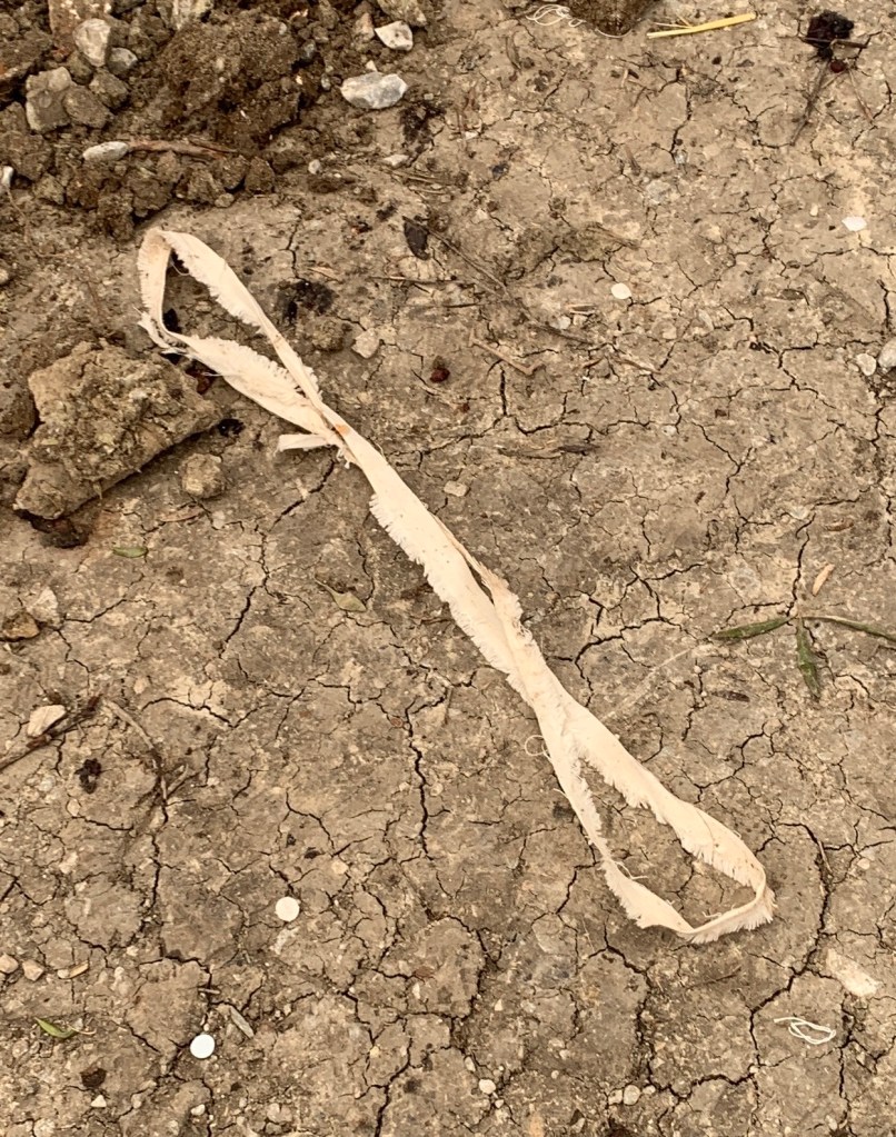 As I raked the ground, prepping the site, separating garbage from gravel, I uncovered a shmuta. It was yellow, like my son’s. It was tied in a knot at one end, like my son’s.