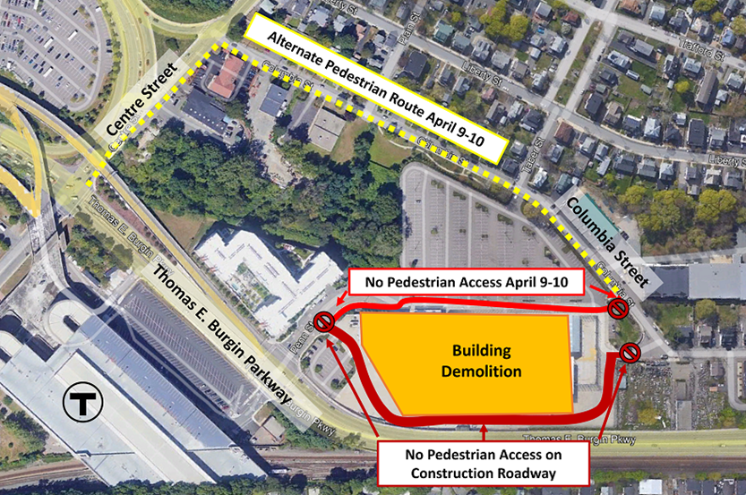 There will be no pedestrian access across the new Quincy Bus Maintenance Facility site during the weekend of April 9-10 from Columbia Street to Thomas Burgin Parkway. This is to ensure pedestrian safety during the scheduled demolition activities of the former Lowe’s building located at 599 Thomas Burgin Parkway.
