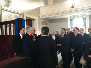 2.28.17 Senator Keenan welcomed the Massachusetts State Senate, including Senate President Stan Rosenberg and Minority Leader Bruce Tarr, to Quincy as part of the Senate’s Commonwealth Conversations Tour. Following a working lunch focused on regional transportation issues, they visited the Church of Presidents and the Thomas Crane Library.