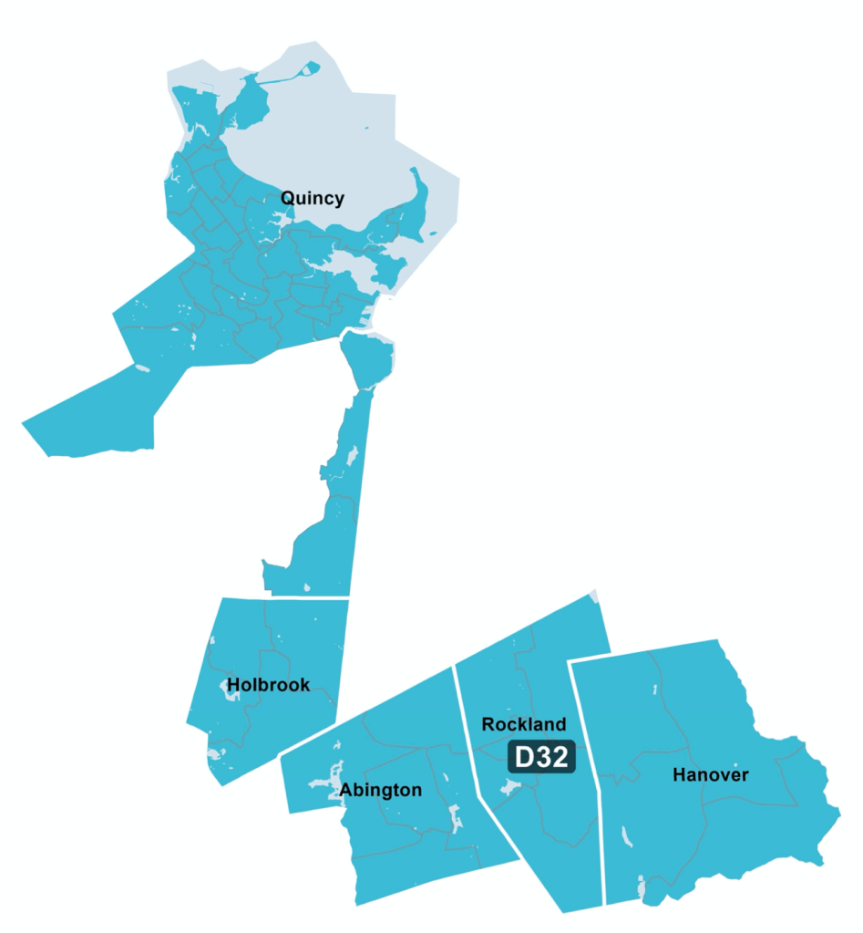 As a result of Wednesday’s vote, the Norfolk & Plymouth District would include the City of Quincy, the Town of Abington, precincts 3B, 4B, and 6A in the Town of Braintree, and all of the towns of Hanover, Holbrook, and Rockland.
